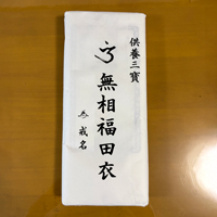 置き布:白い紙に「無相福田衣」と書かれた長方形のもの